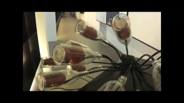 Migrants focuses on the psychological consequences, the feelings, the suppression, the painful inner processes. The form of Migrants is inspired by The Raft of the Medusa by Géricault. As well as a simple message in a bottle - an act of despair or of hope, a rebellion against the silence. The base is a boat (with a rubber boat deck) to which bottles are tied using cables. Inside each of them beats a membrane (moulded on an actual heart). The sound of each bottle is a voice and, all together, the ensemble is drowned out by the beating hearts.